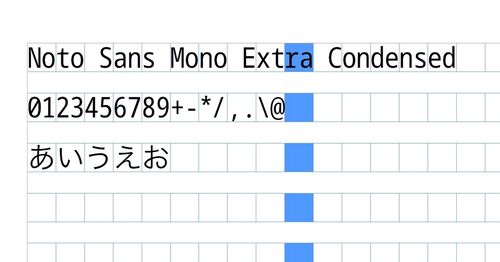最近発見したんですけども、Google Fontsにある「Noto Sans Mono Extra Condensed」って等幅かつ半角の欧文フォントなんです。 なぜ今まで誰も気がつかなかったんだ……。プログラミング向けの等幅フォントであるNoto Sans Monoには、標準のほか、Semi Condens…