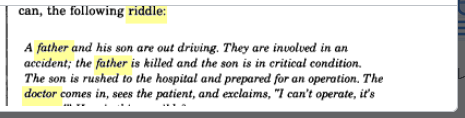 こう思うわけです。外科医は母だとして、なぜ「手術はできない」などと言うのか、母だったらなぜ手術できないのか、まったくなにも説明されてないじゃないか、と。